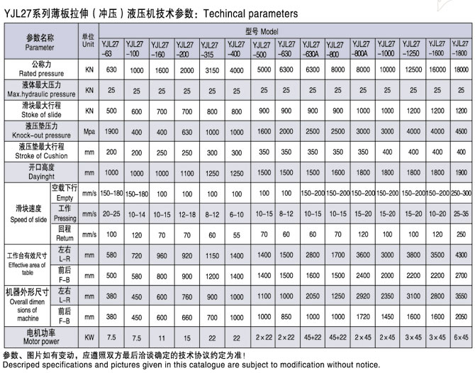 YJL27-四柱式、框架式單動(dòng)薄板液壓機(jī)